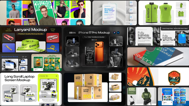 We create a wide range of professional mockups — from product displays to creative visual setups — allowing designers to showcase their work attractively. All mockups are highly editable and adaptable to any creative section